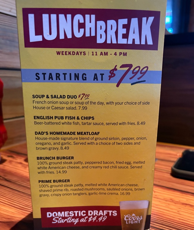 Rich and I met Tim and Dee at the Elks for a reasonably priced lunch. It’s one of the few places you can get lunch and drinks for two for under $30.