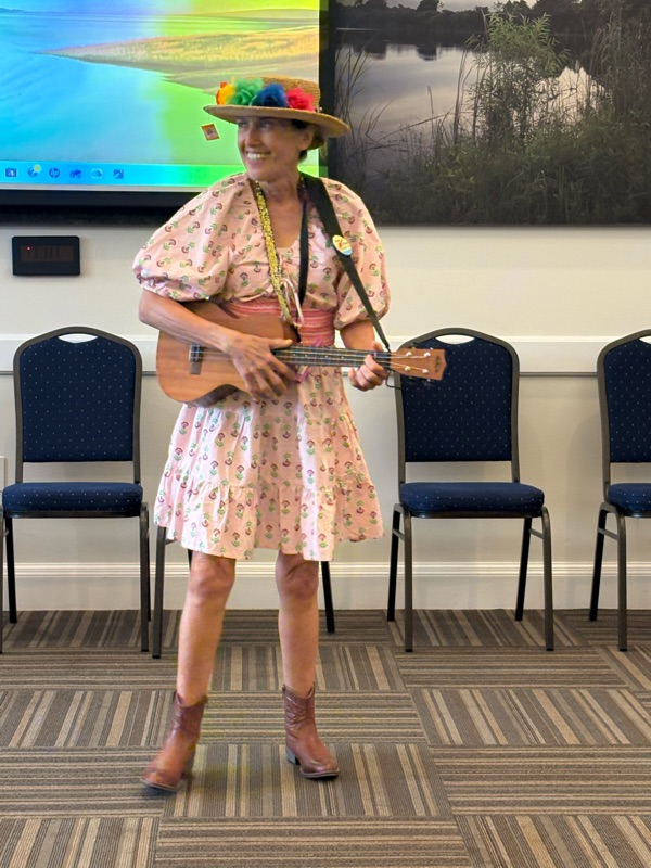 Walked at 8 to beat the heat. Then we went to a sing and strum rehearsal for a gig at Palma Sola Botanical Park Plant Sale here in Bradenton. Stay tuned to hear about this event on Sunday.