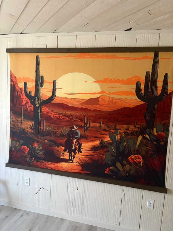 Wedding in NY - The next morning, we were on the road to Lake George, NY’s Wild West Ranch for Rich’s grandson, Kegan’s marriage to Cassidi. We may not be going to the real wild west, but we are reminded of it in this setting. Our room in the Bunkhouse has an awesome mural of the saguaros at sunset…