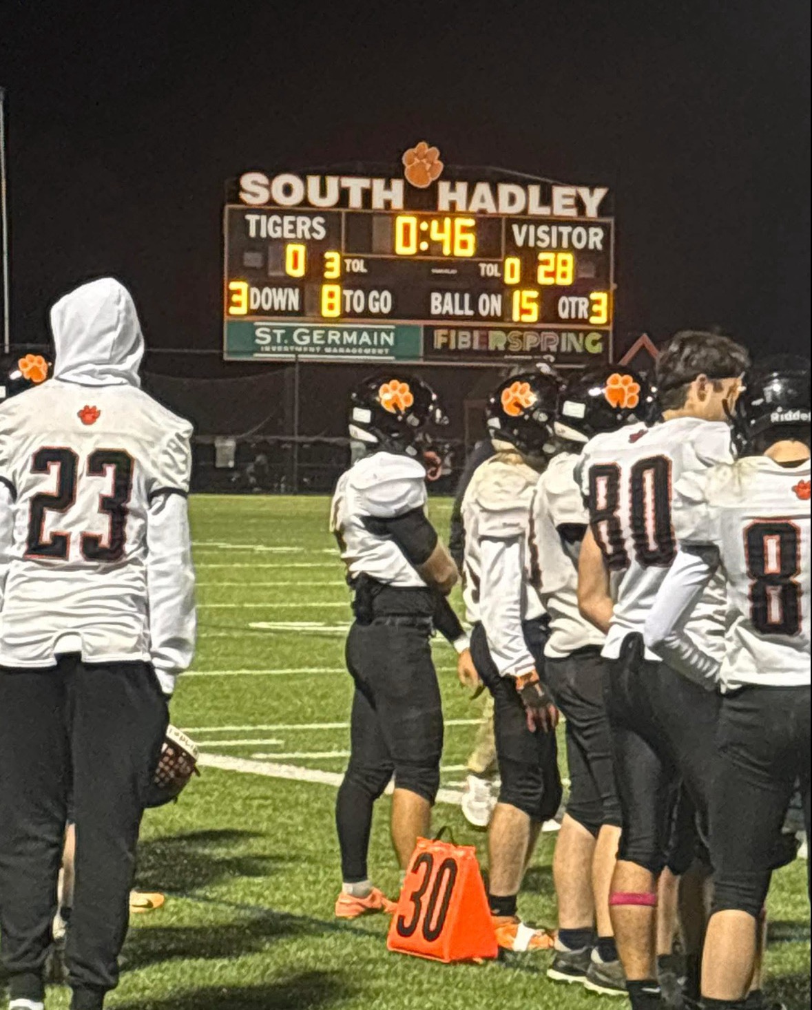 The Lee Wildcat Varsity Sports Roundup: The football team is steamrolling the competition (7-0) with Jake (23) standing on the sidelines cheering therm on. They will likely be playing in the Western Mass. Super Bowl at Gillette Stadium in Boston.
