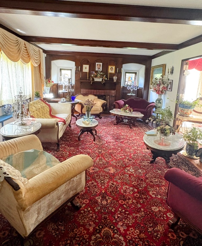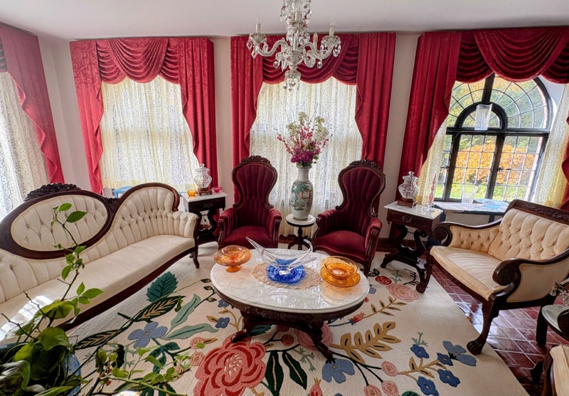 As you can see, her whole house is decorated in fine furniture, chandeliers and china wear. She told us that she gets her china from Goodwill. I mentioned dusting all of it - she has a cleaning lady come dust and clean every 2 weeks. And a tour of the other rooms…