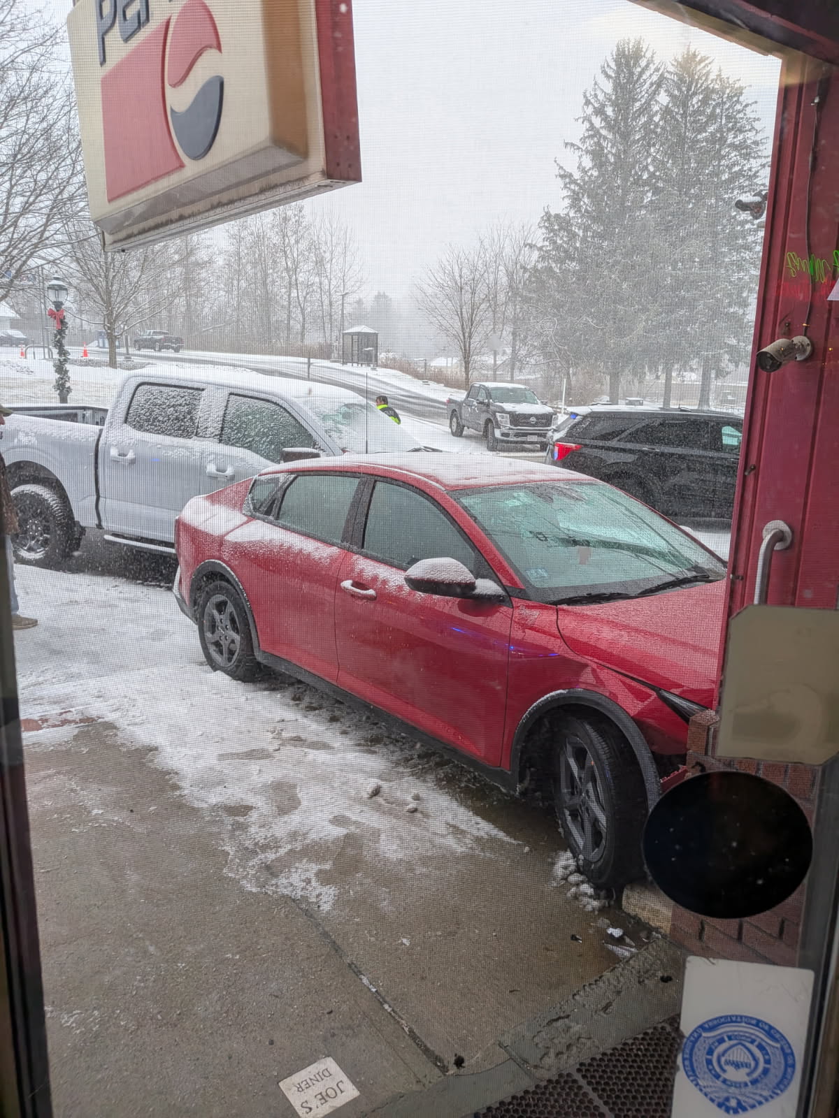 My son-in-law, Dave, took Zachary to breakfast this morning and when they were preparing to leave, they heard a crash. It was Dave’s 2026 Ford 150 truck that a rental car ricocheted into. WOW!