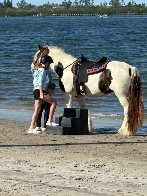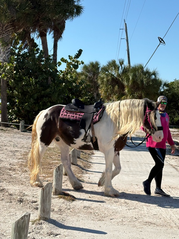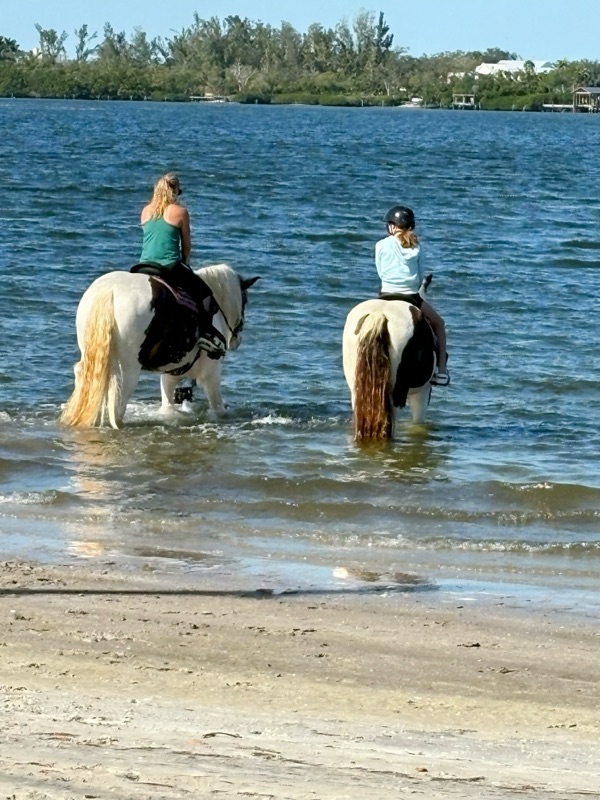 As we crossed the Intercoastal waterway headed back home, we spotted horse riders in the shallow water. Tim and Dee had told us about them, but our first time seeing them. Looks fun!