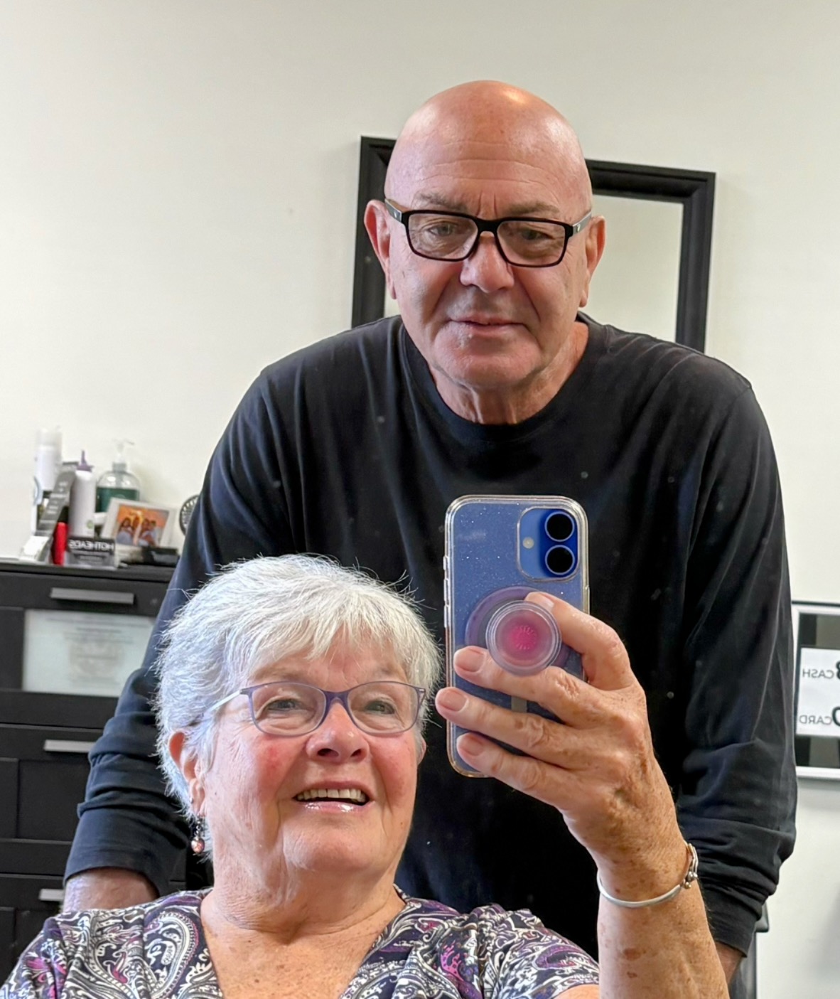 Hot Heads is right next door so I walked-in and was lucky enough to get Joe (the owner) to cut my hair. Originally he retired after 40 years of hair styling, but his wife works from home and was always asking him to do this and that. He decided he needed to go back to work. A woman told him she was selling - was sick of it and wanted out. He said he’d buy her shop and here he is 3 years later. He gave me kind of a wild look which is fine with me. Only one tinsel came out in the process - he said Dianne did a really good job fusing them to my hair.