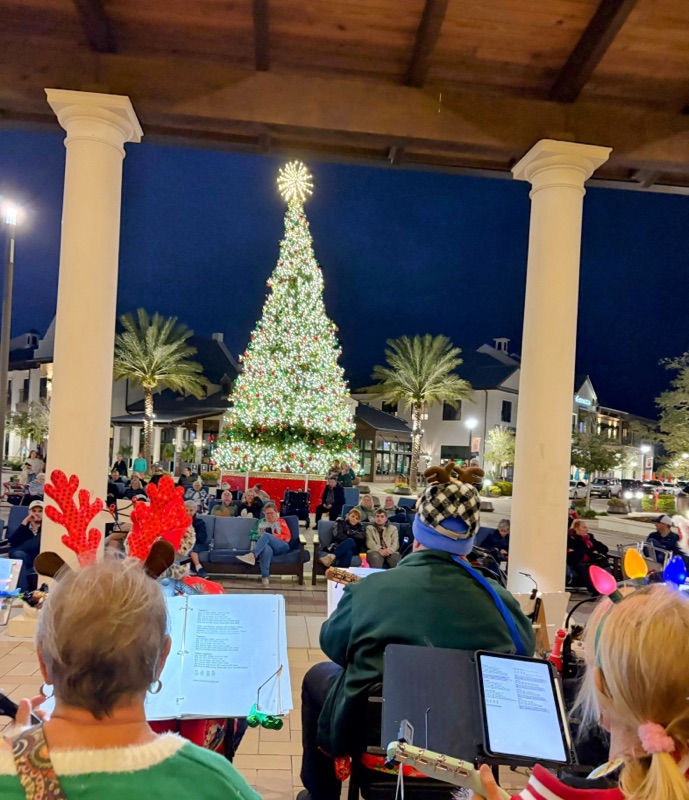 Totally blew it today! Did NOT walk or swim, because I slept sound and late. I am glad for that, but ran out to time before our performance in the University Mall, Sarasota, FL. I have not been in a mall since pre-Covid, so was reminded of the enormity of Macy’s alone! And the clerks walking around in high-heels. And the bright shining bling in the jewelry department. And the samples of lipstick which people actually put on their lips. Thanks to on-line shopping, I felt like it was a different planet.