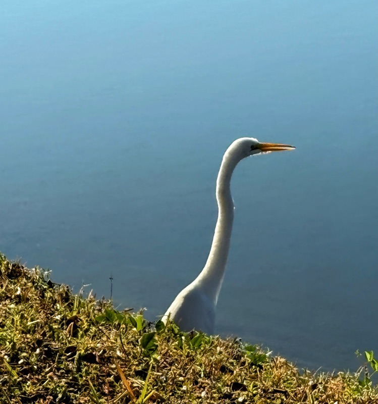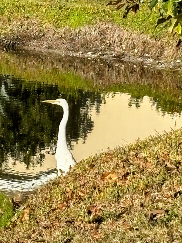 I was mentally ready to go swimming this morning when it suddenly got dark and rained very hard. The temps cooled and I didn’t plan on going. Then it stopped and the wind stopped too. So at 8:55 I looked out the window to see if any cars showed up at the pool. Lo and behold, 2 cars were there so I donned my suit and grabbed my bag and went over. Terry, the instructor, showed up and 4 of us polliwogs. The water was gloriously warm and Terry proceeded with a partial class, but we stayed longer to finish the routine. I am so tired of walking instead of swimming, but it looks like we won’t be swimming for the rest of this week and part of the next given the weather forecast.
