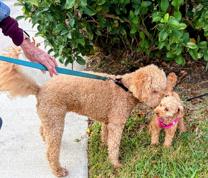 Walked with Charlotte this morning and Shotsie met her mini-me. Same exact coloring and curly hair.
