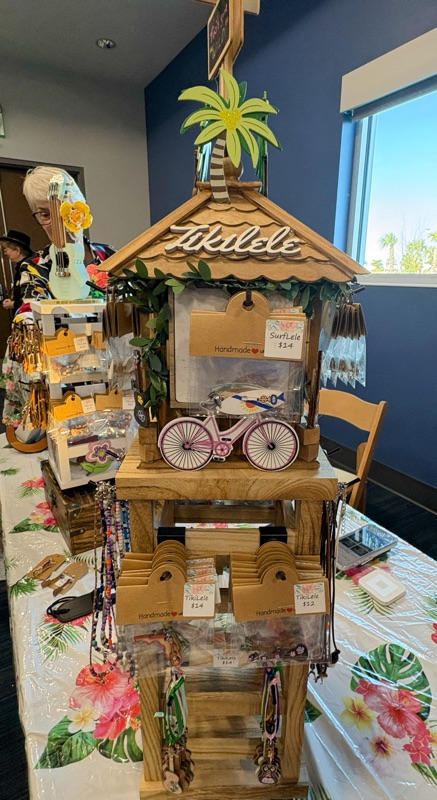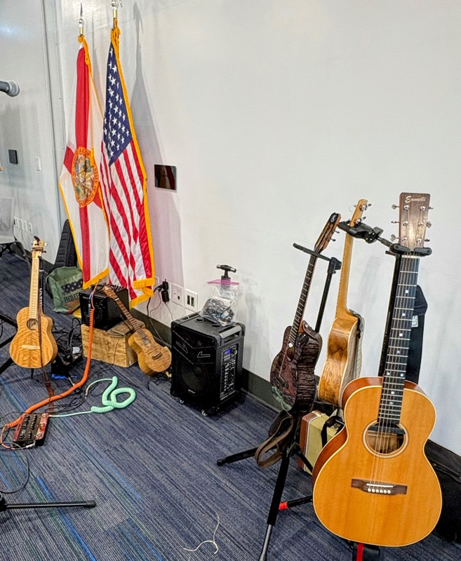Dropped to 35 degrees today and there was literally frost on the grass. I did not walk today, not as much about the cold as it was that I wouldn’t have time. Today was the first day of a 2-day ukulele mini-fest at the Lakewood Ranch Library, where workshops, bring your own lunch and performances were on the agenda. Raffle tickets were sold and hand crafted jewelry was for sale.