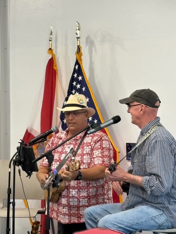 Woke up to rain and wind so didn’t walk as we went to ukulele strum and sing for the morning.