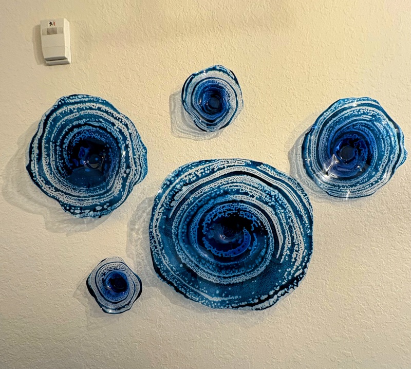 Back on the walk when the wind came up and it got misty so I turned around, stopped at Betty’s for a cup of coffee! This wall art is made from recycled plastic bottles…