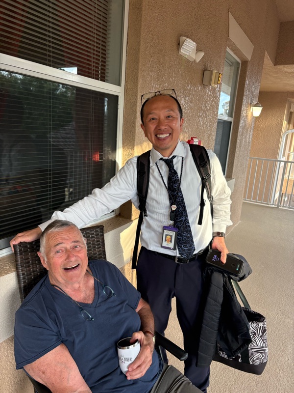 We were on the front porch when our next door neighbor, John, came home from work. It was the first time we met him. Met his wife once a while back. He is a professor at Lecom Medical School for physicians and pharmacists. They are renting here now, but they have found a home of their own. The owner has put the condo on the market.